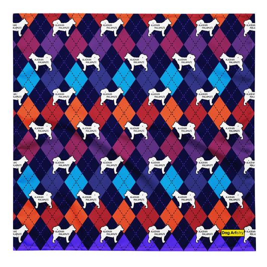 Colorful Argyle Alaskan Malamute All-over print bandana