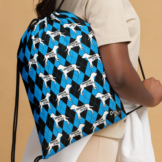 American Bully Argyle Blue and Black Drawstring bag