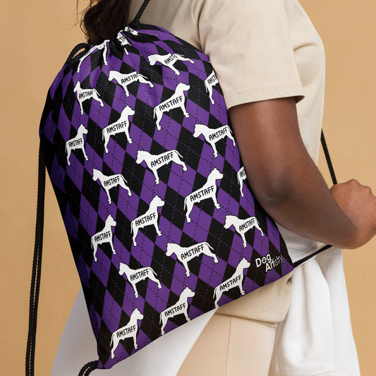 AmStaff Argyle Purple and Black Drawstring bag