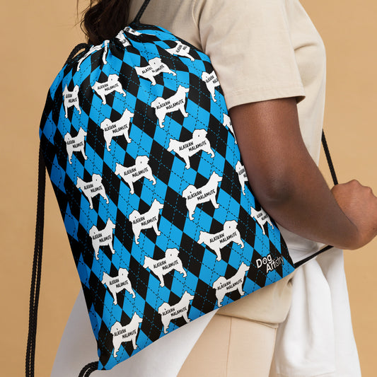 Alaskan Malamute Blue Argyle Drawstring bag