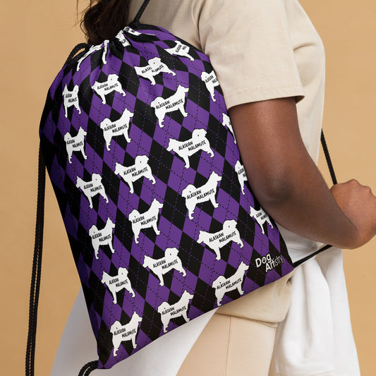 Alaskan Malamute Purple Argyle Drawstring bag