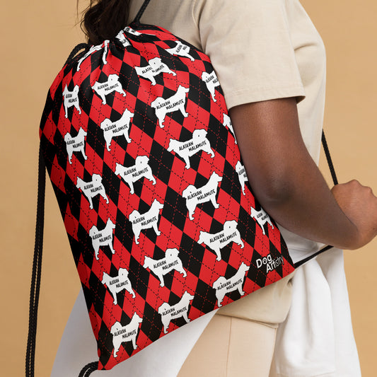 Alaskan Malamute Red Argyle Drawstring bag