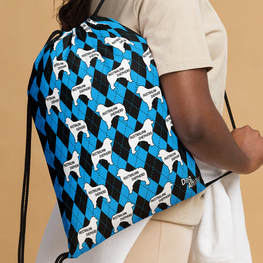 Australian Shepherd Blue Argyle Drawstring bag