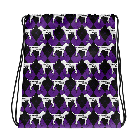 American Bully Argyle Purple and Black Drawstring bag