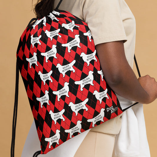 Golden Retriever Argyle Red and Black Drawstring bag