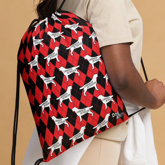 Labrador Retriever Argyle Red and Black Drawstring bag