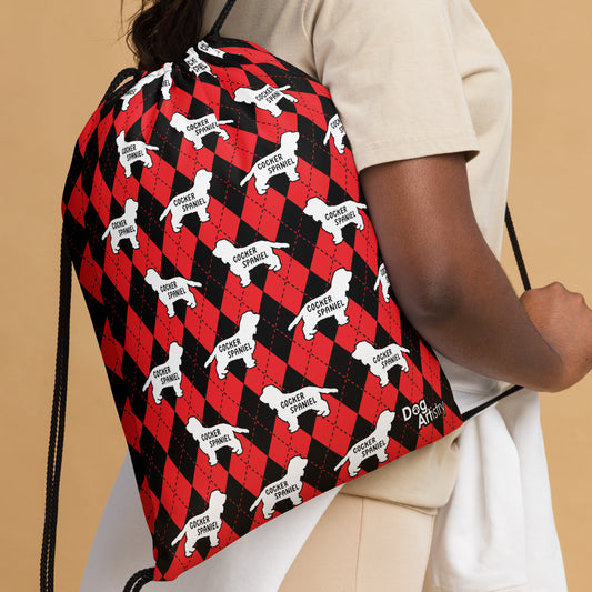 Cocker Spaniel Red Argyle Drawstring bag