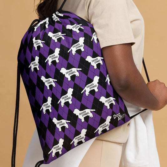 Cocker Spaniel Purple Argyle Drawstring bag