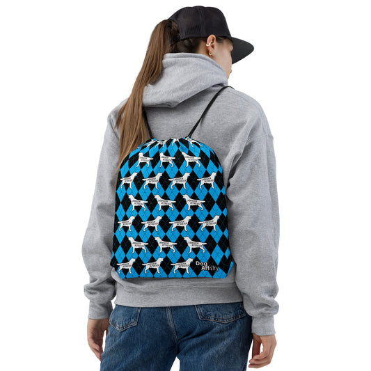 Rottweiler Argyle Blue and Black Drawstring bag