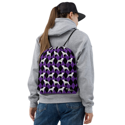 Rottweiler Argyle Purple and Black Drawstring bag