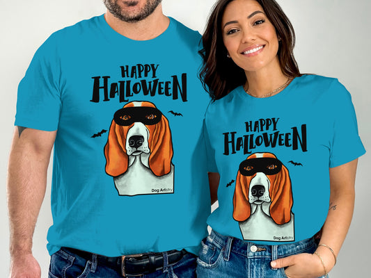 Basset Hound Wearing Mask Happy Halloween Funny Unisex T-Shirt
