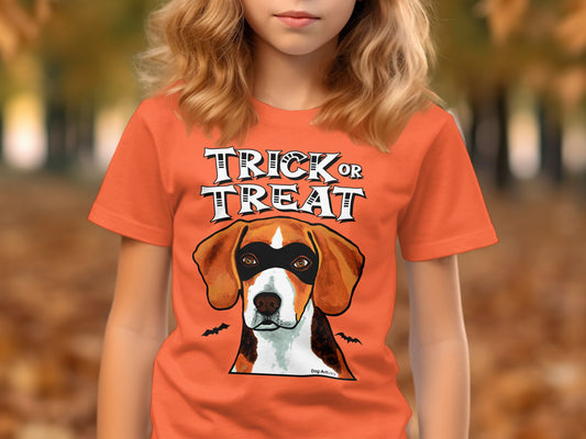 Beagle Wearing Mask Trick or Treat Halloween Funny Kid’s T-Shirt