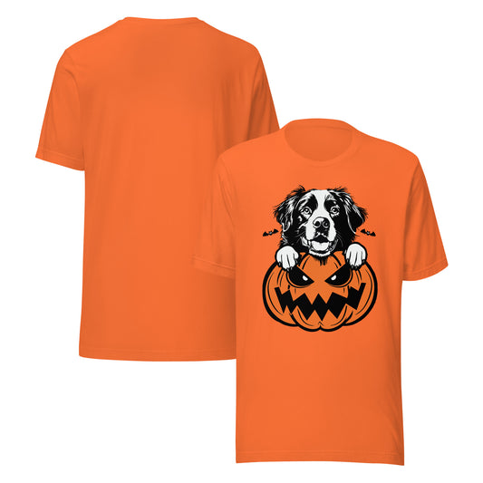 Bernese Mountain Dog Peeking Halloween Pumpkin Unisex T-Shirt by Dog Artistry