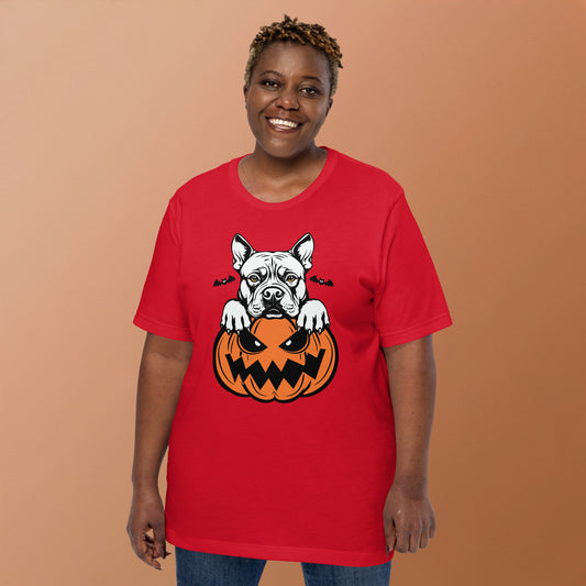 American Bully Dog Peeking Halloween Pumpkin Unisex T-Shirt by Dog Artistry