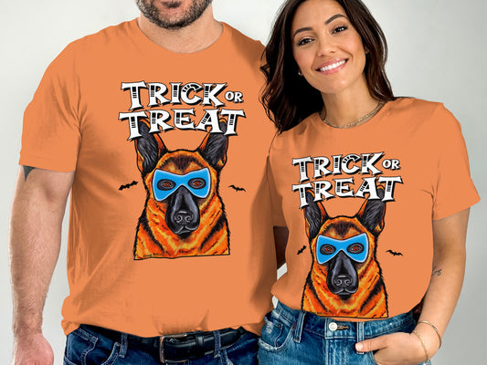 German Shepherd Wearing Mask Trick or Treat Halloween Funny Unisex T-Shirt