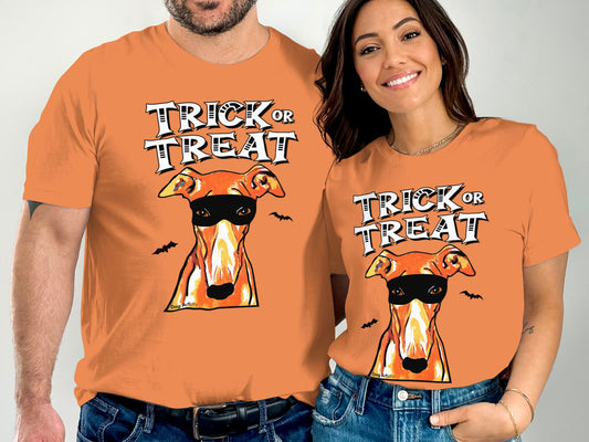 Greyhound Whippet Wearing Mask Trick or Treat Halloween Funny Unisex T-Shirt