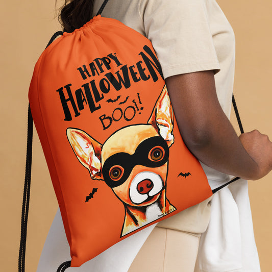 Halloween Candy Drawstring Bag with Chihuahua Wearing a Mask