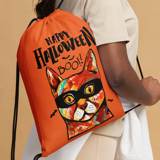 Halloween Candy Drawstring Bag with Cat Wearing a Mask
