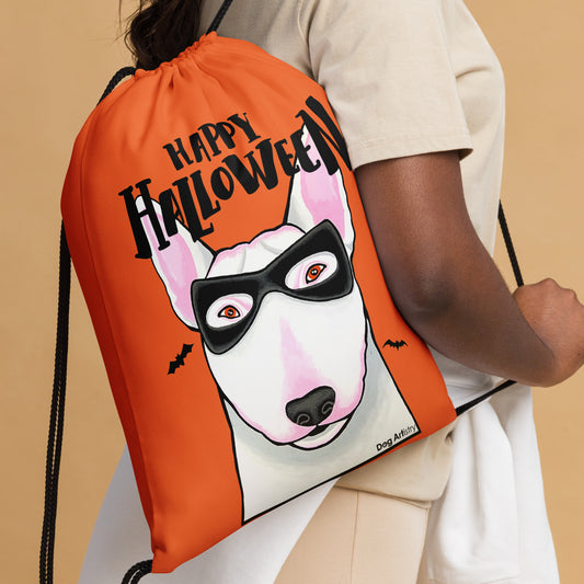 Halloween Candy Drawstring Bag with English Bull Terrier Wearing a Mask