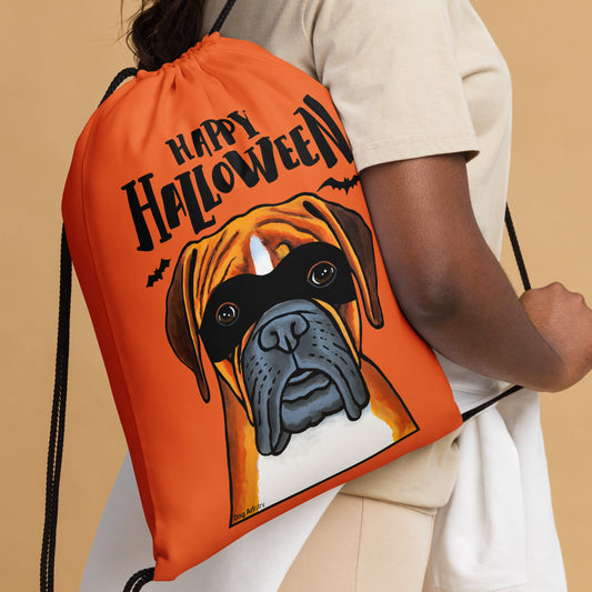 Halloween Candy Drawstring Bag with Boxer Wearing a Mask