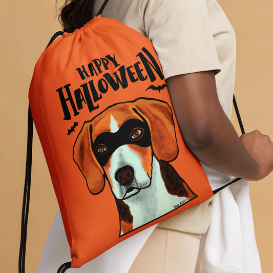 Halloween Candy Drawstring Bag with Beagle Wearing a Mask