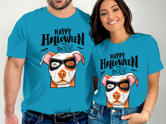 Pit Bull Amstaff Wearing Mask Happy Halloween Funny Unisex T-Shirt