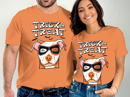 Pit Bull Amstaff Wearing Mask Trick or Treat Halloween Funny Unisex T-Shirt