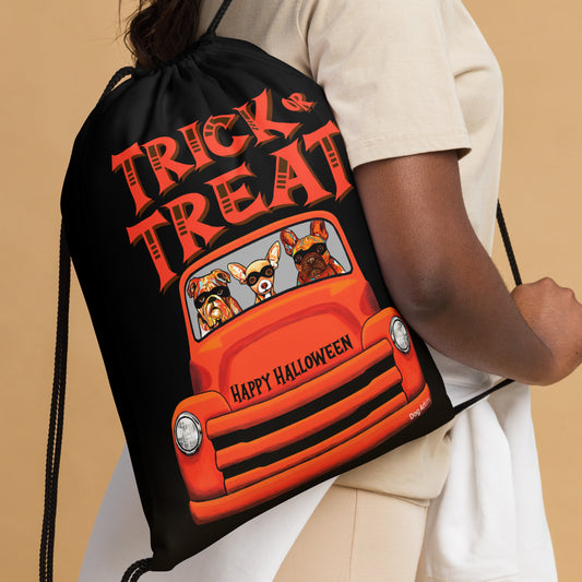 Halloween Candy Drawstring bag with Orange Truck - English Bulldog, Chihuahua, and French Bulldog