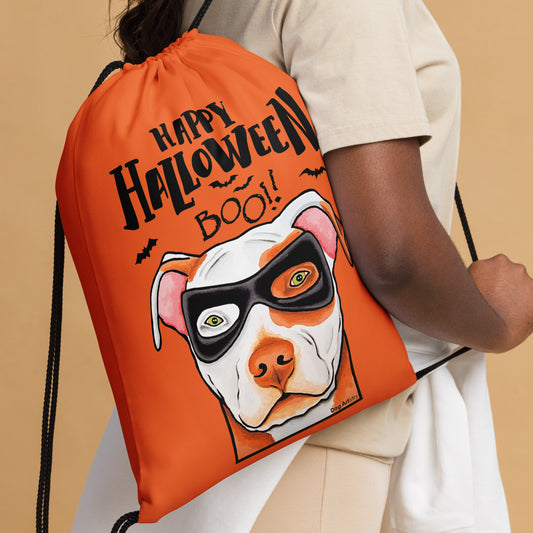 Halloween Candy Drawstring Bag with Pit Bull Wearing a Mask