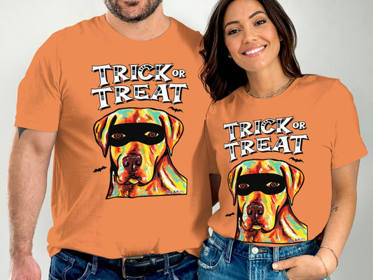Labrador Retriever Wearing Mask Trick or Treat Halloween Funny Unisex T-Shirt