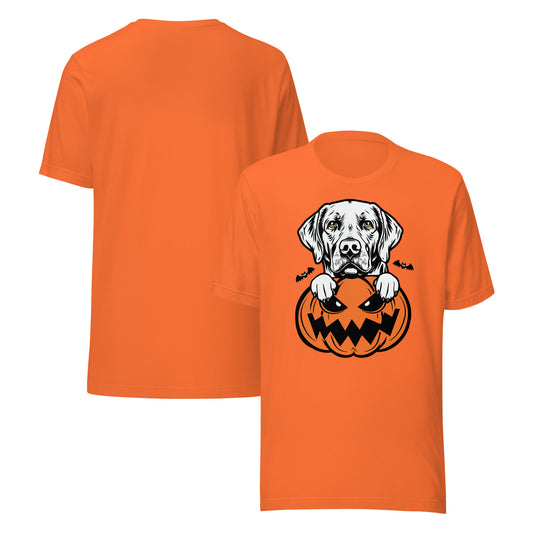 Labrador Retriever Dog Peeking Halloween Pumpkin Unisex T-Shirt by Dog Artistry
