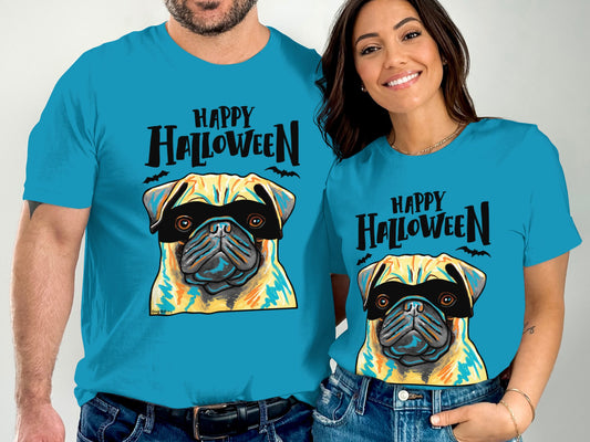 Pug Wearing Mask Happy Halloween Funny Unisex T-Shirt