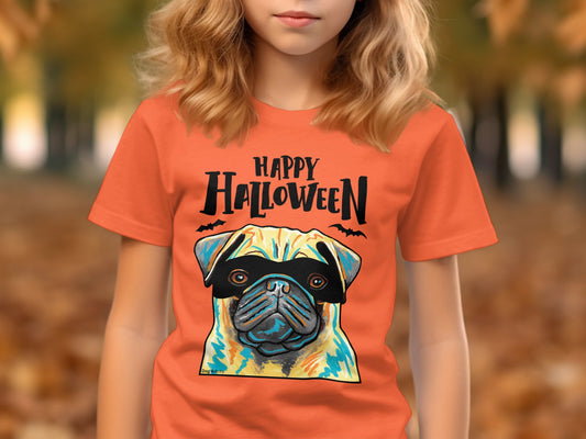 Pug Wearing Mask Happy Halloween Funny Kid's T-Shirt