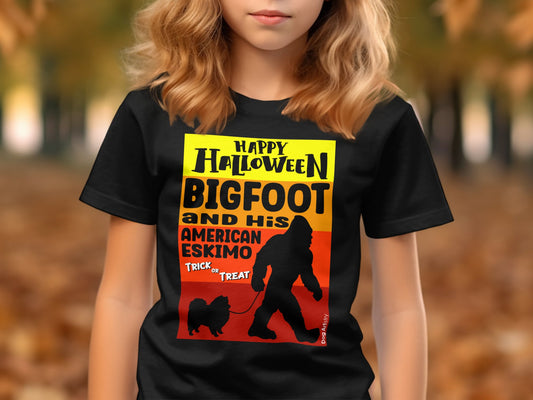Happy Halloween Bigfoot and His American Eskimo Trick or Treat Funny Kid's T-Shirt