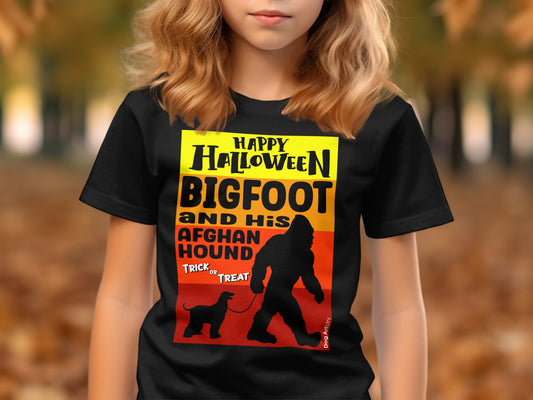 Happy Halloween Bigfoot and His Afghan Hound Trick or Treat Funny Kid's T-Shirt