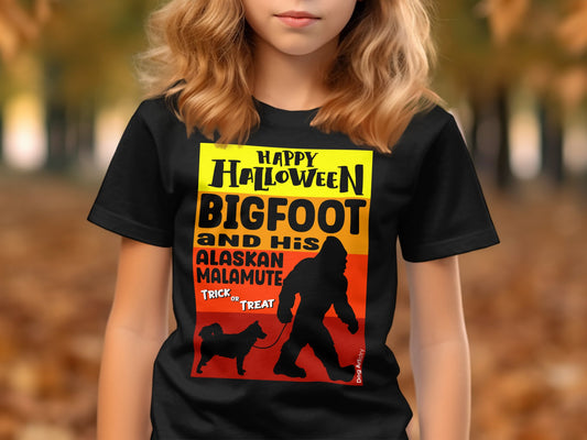 Happy Halloween Bigfoot and His Alaskan Malamute Trick or Treat Funny Kid's T-Shirt