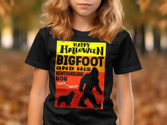 Happy Halloween Bigfoot and His Newfoundland Trick or Treat Funny Kid's T-Shirt