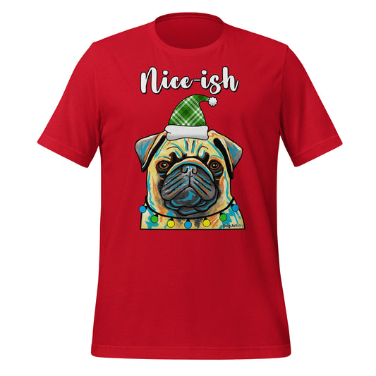 Pug Nice-Ish Holiday Unisex T-Shirt by Dog Artistry
