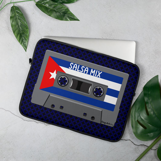 Salsa Mix Cassette Tape with Cuban Flag Laptop Sleeve
