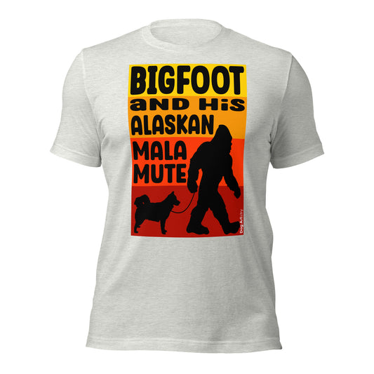 Bigfoot and His Alaskan Malamute Unisex T-Shirt by Dog Artistry