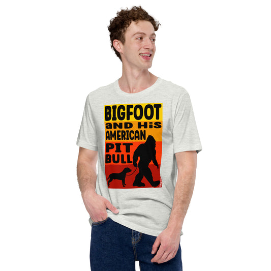 Bigfoot and His American Pit Bull Unisex T-Shirt by Dog Artistry