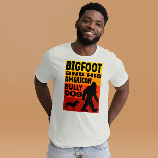 Bigfoot and His American Bully Unisex T-Shirt by Dog Artistry