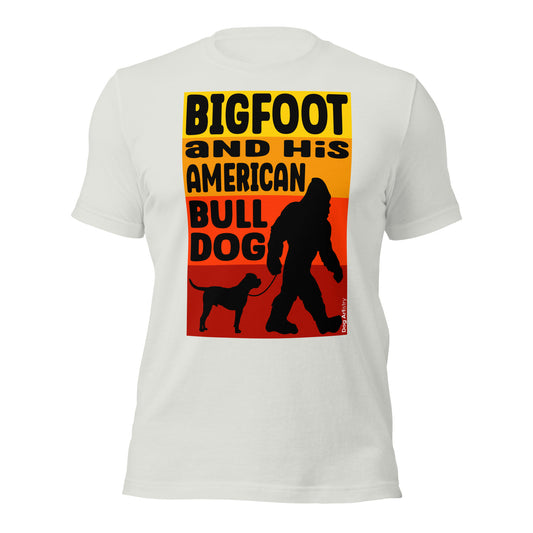 Bigfoot and His American Bulldog Unisex T-Shirt by Dog Artistry