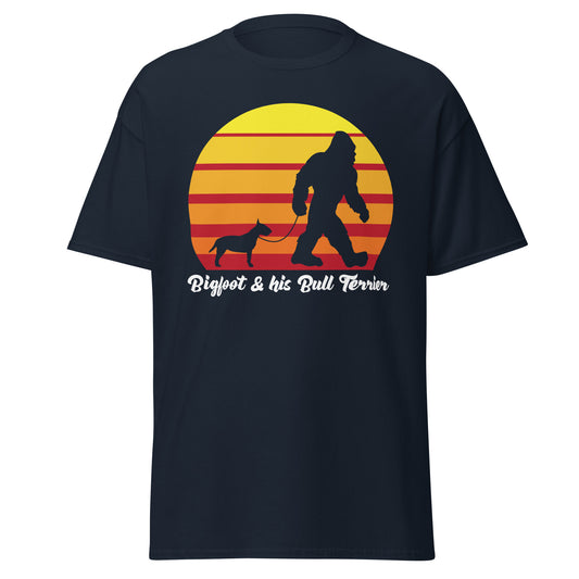 Bigfoot and His Bullmastiff Unisex T-Shirt by Dog Artistry