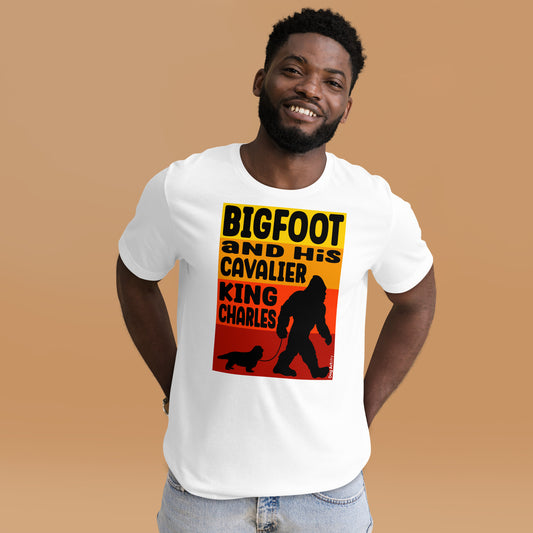 Bigfoot and His Cavalier King Charles Spaniel Unisex T-Shirt by Dog Artistry