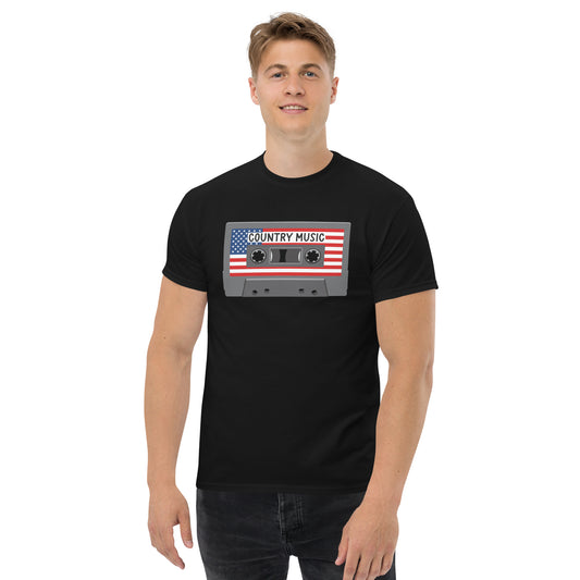 Country Music Cassette Tapes with American Flag Men's classic tee