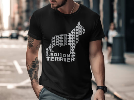 Boston Terrier Polynesian Tattoo Design Unisex T-Shirt