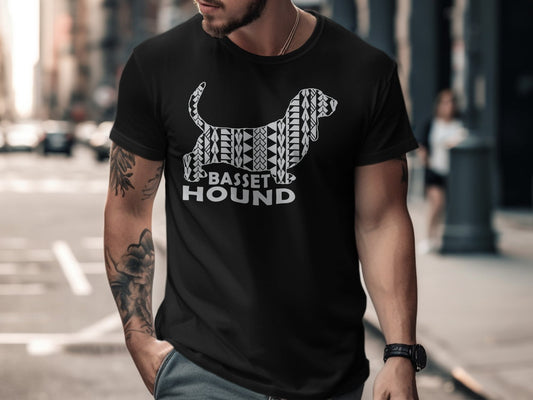 Basset Hound Polynesian Tattoo Design Unisex T-Shirt