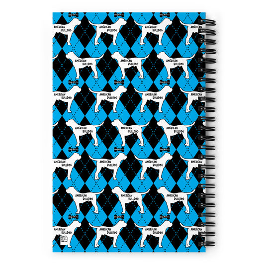 American Bulldog Argyle Blue and Black Spiral Notebooks