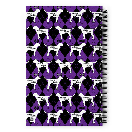 American Bulldog Argyle Purple and Black Spiral Notebooks